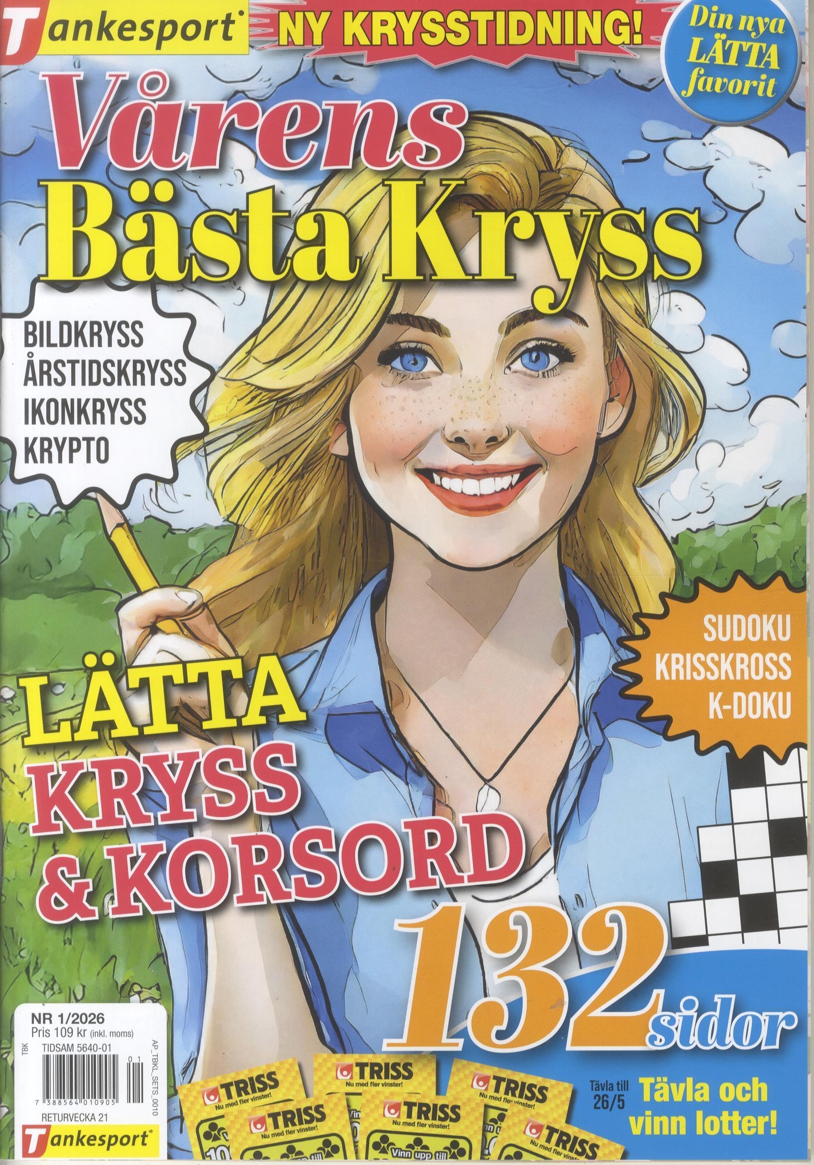 Tankesports bästa kryss är en härlig mix av kryss och pyssel på lätt nivå! De 132 sidorna är sprängfyllda med underhållande klurigheter för årets alla årstider och säsonger. Vill du direkt se att du gjort rätt så finns alla lösningarna i tidningen.